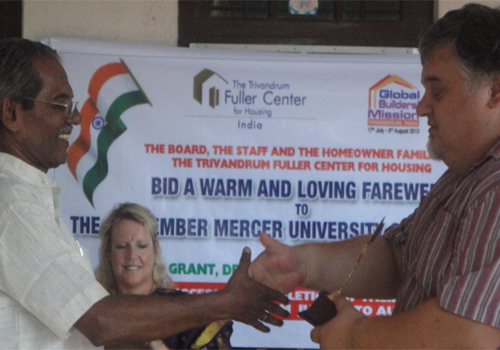 The first Global Builders' team comprising scholars of Mercer University led by Dr Chris Grant and co-led by Dr Ann Drake & Dr Ashley Murray visited the Trivandrum Fuller Center for Housing, India from July 17 to August 03, 2012.